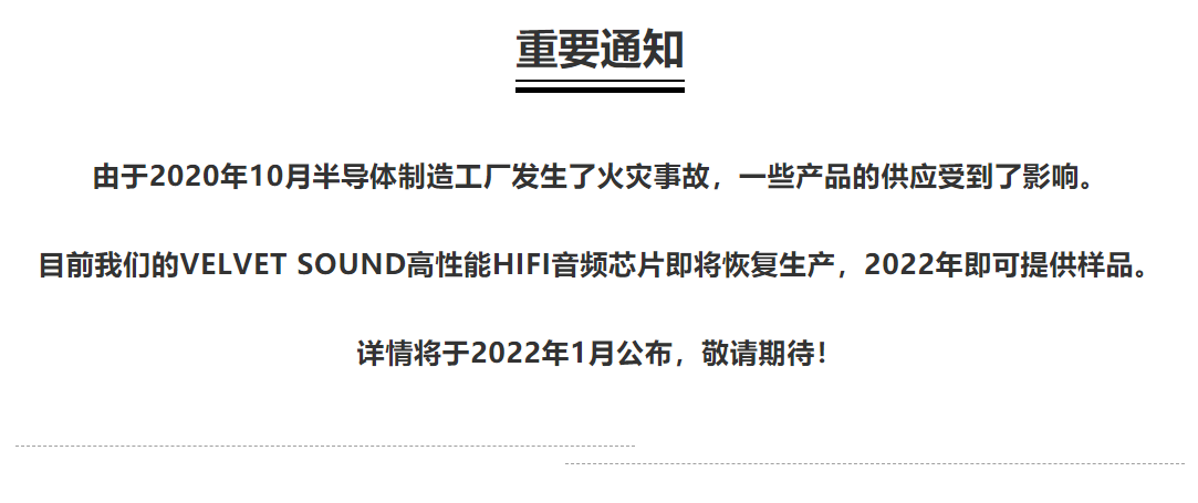 HIFI音頻芯片VELVET SOUND即將恢復(fù)生產(chǎn)!