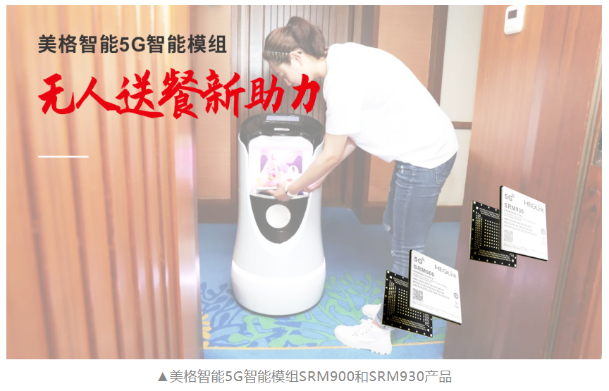 在新冠疫情倒逼之下,無人送餐市場加速擴增。作為全球領先的無線通信模組及解決方案提供商,不管是技術上還是設計方案上,美格智能的SRM900和SRM930兩款5G智能模組都具備行業領先的實力,可為送餐機器人注入強大的新生活力,賦予送餐機器人更完善的功能和更高的商業價值,提升餐飲消費場景的工作效率和服務效果,為餐飲服務行業降本增效。